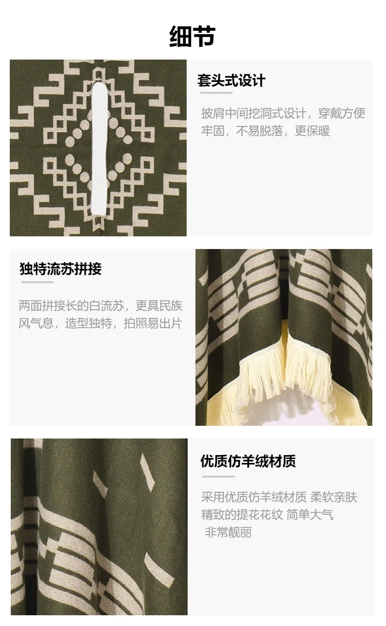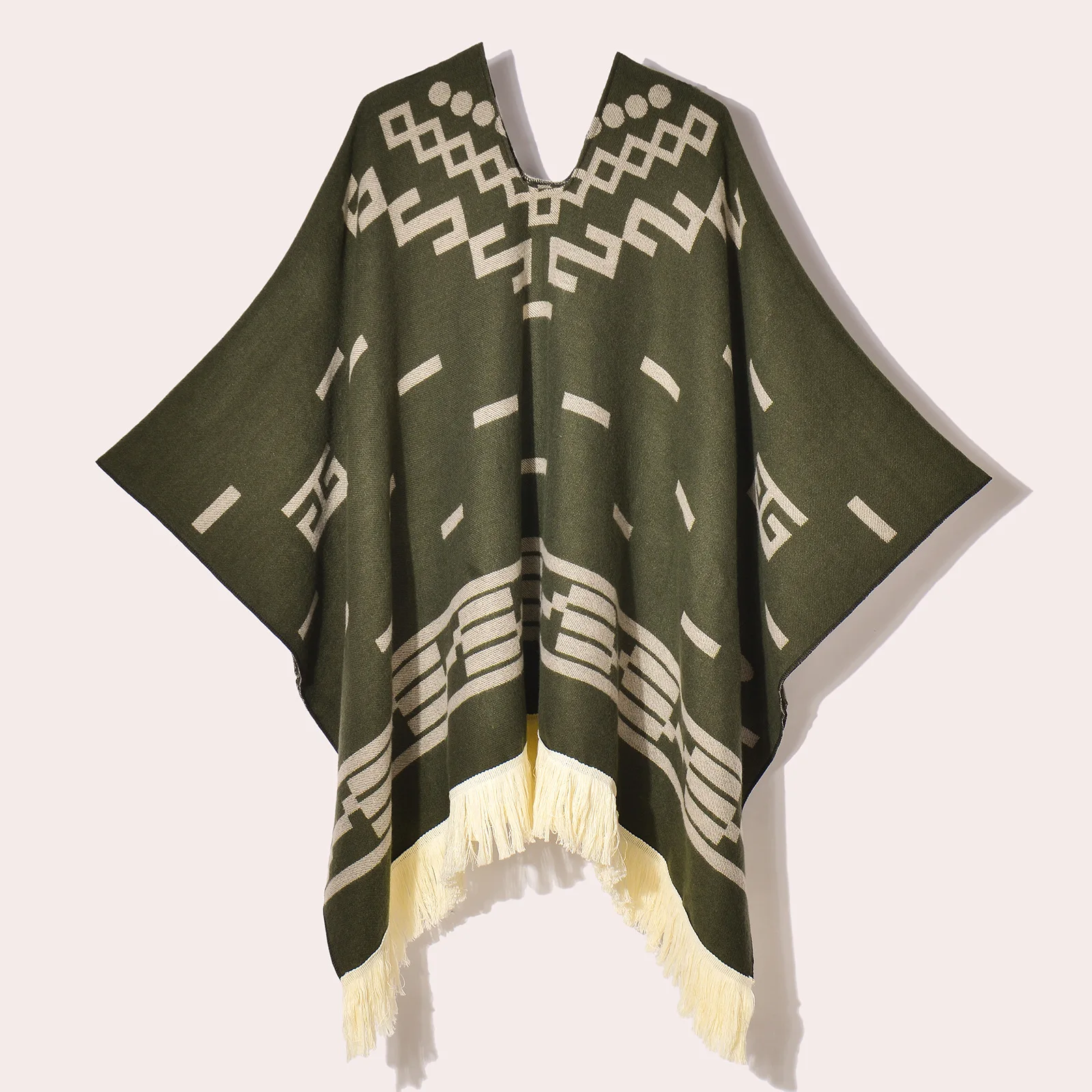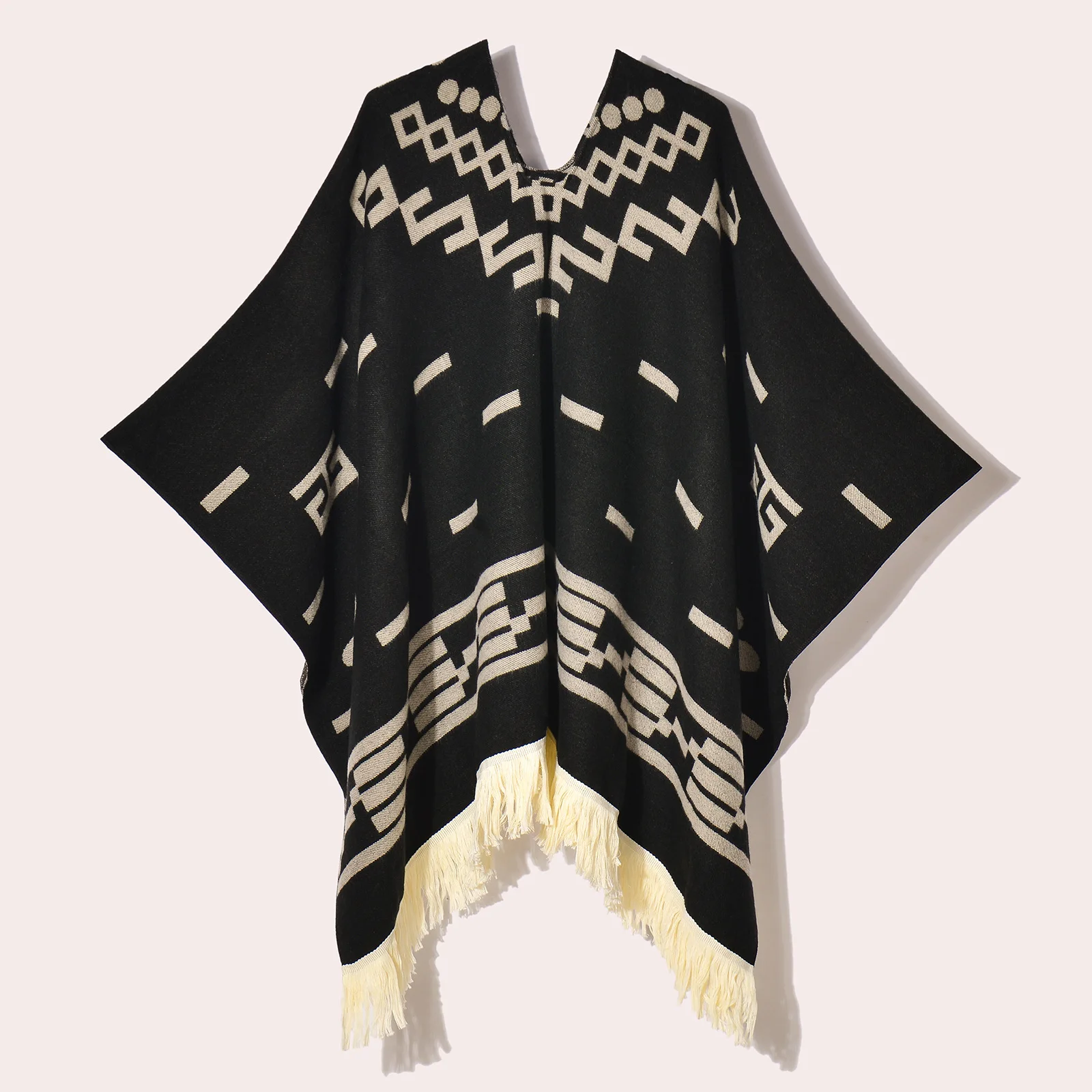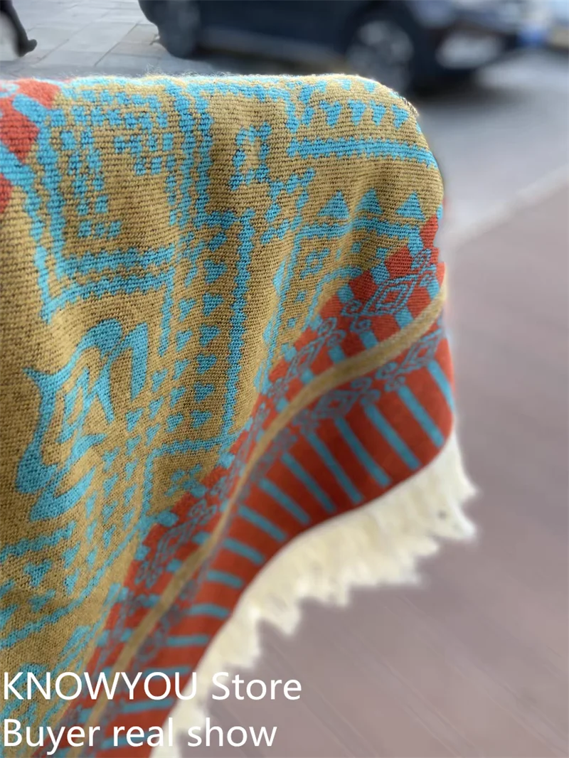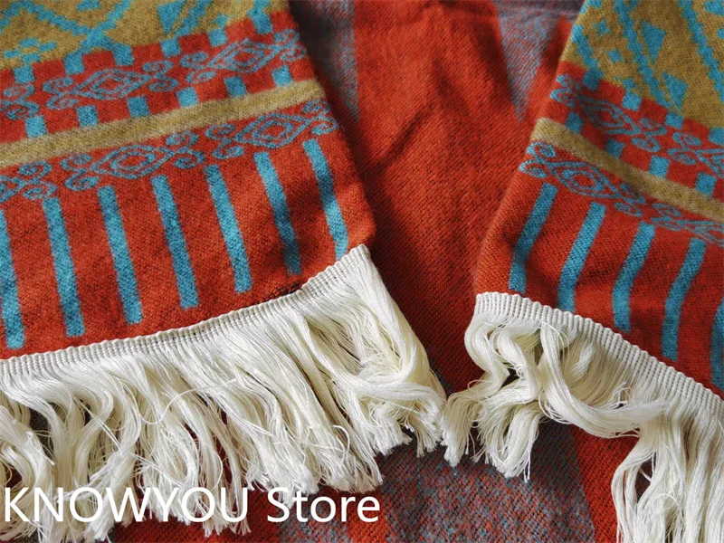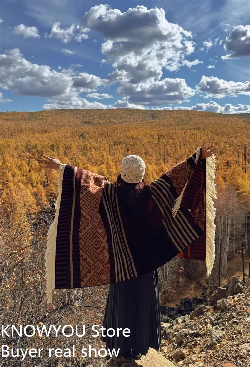 Traveling Women's Poncho Shawl Ethnic Style Tassels Hoodie Cloak Winter Warm Jacquard Outdoor Decoration Men Big Cape Blanket